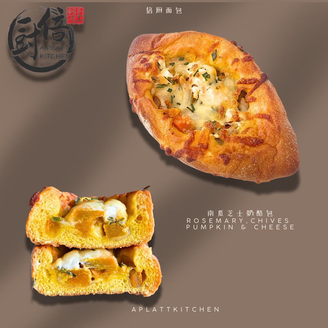We roast fresh pumpkin chunks with olive oil, garlic, chives and rosemary, then fold them into molten mozzarella within our golden pumpkin dough. Before baking, we top it with cream cheese, chives and more mozzarella for an irresistible, herb-infused pull in every bite.